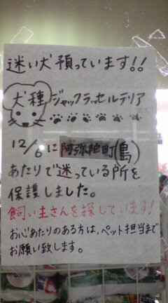 12/6(木)、兵庫県高砂市米田町米田の自宅から脱走してしまったジャック・ラッセル・テリア