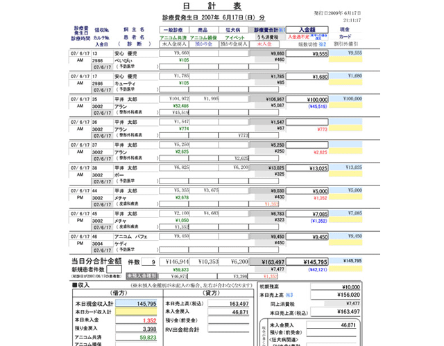 「診療件数」、「売上金額」、「支出金額」などが自動集計されます。預り金や未収金なども含み、売上管理・分析が容易に行えます。