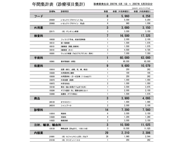 治療費や保険対象項目が一目瞭然!