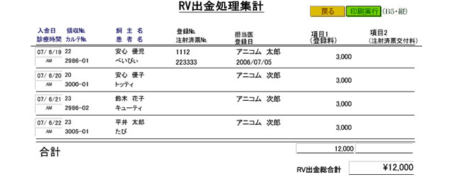 「月間・年間集計表」「未入金一覧」「預り金一覧」、「RV出金集計」「RV実施名簿」なども作成できます。