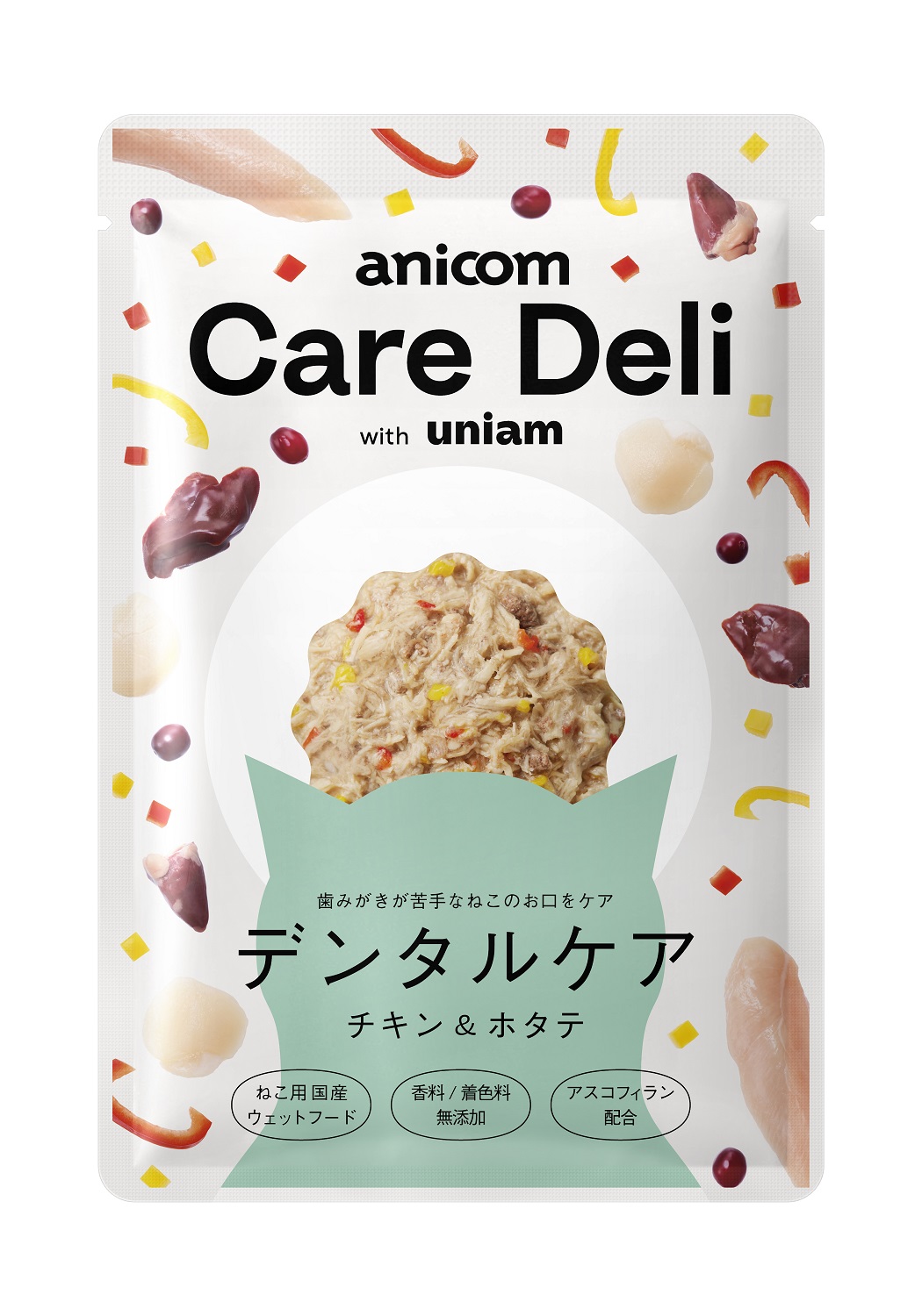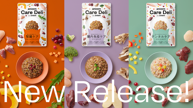 ペット保険シェアNo.1※1のアニコム損害保険株式会社のグループ会社であるアニコム パフェ株式会社(本社 東京都新宿区、代表取締役社長 安宅 快、以下 当社)は、獣医師発の猫専門ブランドを運営する株式会社uniam(本社 東京都港区、代表取締役社長 杉本 亜衣、以下 ユニアム)と共同開発した機能性ウェットキャットフード「anicom Care Deli with uniam(アニコム ケアデリ ウィズ ユニアム)」において、このたび新たに、「腎臓ケア」「腸内免疫ケア」「デンタルケア」の3商品を、9月11日より販売開始いたします。